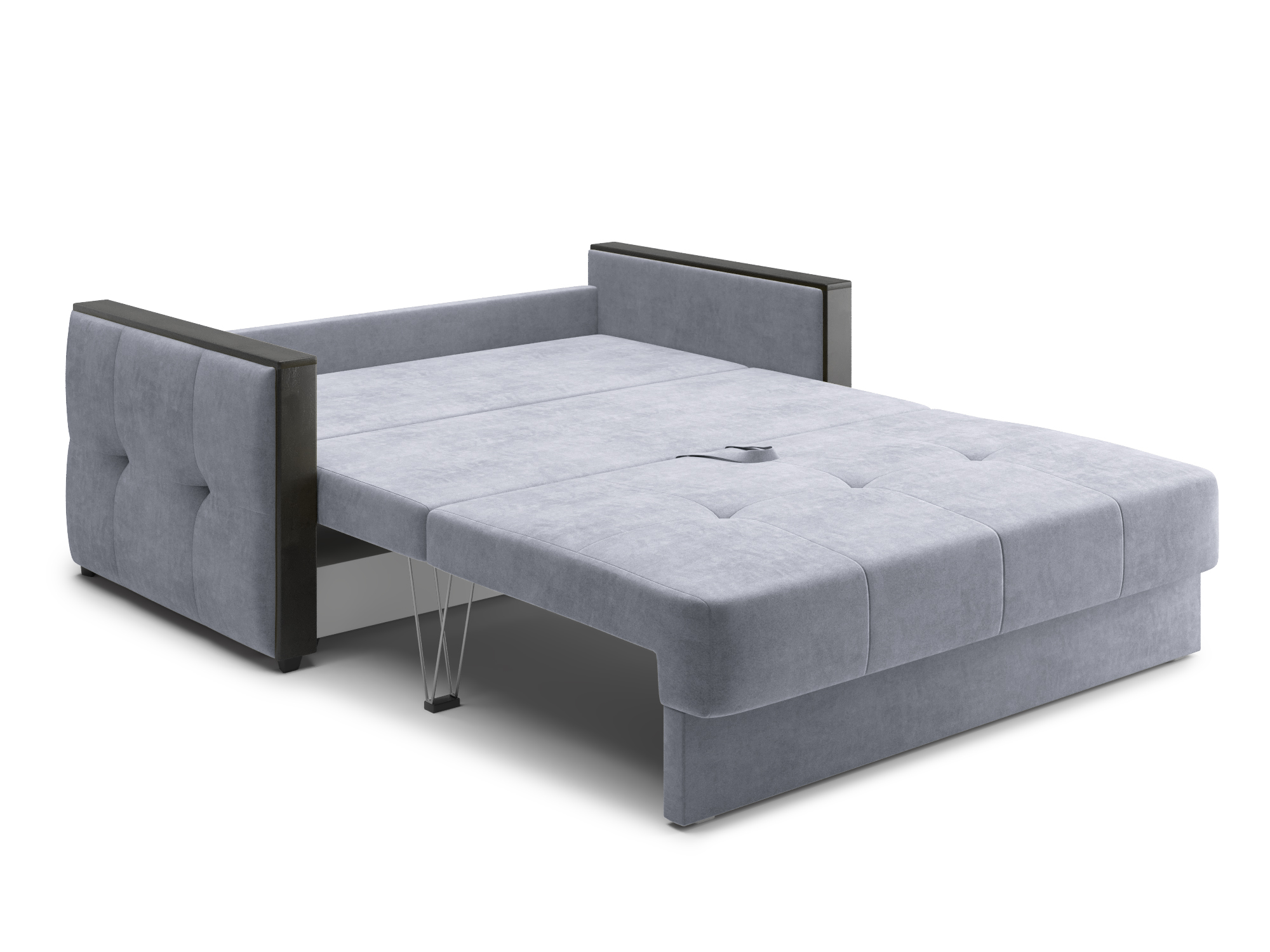 - Механизм раскладки трёхсекционная еврокнижка. В отличие от еврокнижки, спальное место у такого дивана образуется поперёк, а не вдоль сидячего места и состоит из трёх частей. Благодаря такой конструкции габариты дивана в ширину могут быть значительно меньше, чем у еврокнижки, что актуально при планировании расстановки мебели в зависимости от размеров помещения. Под сиденьем дивана находится короб для хранения вещей и постельных принадлежностей.