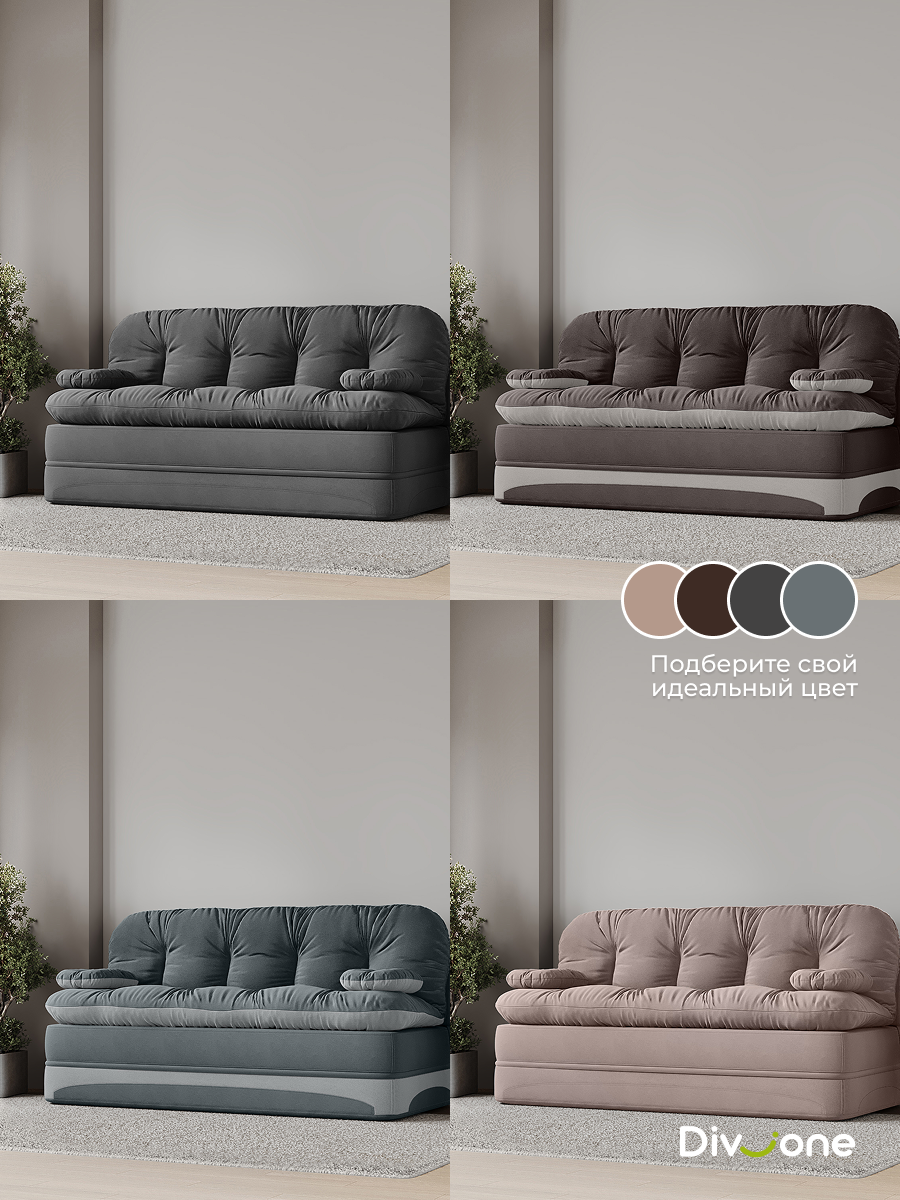 Если вы ищете предмет интерьера, способный стать центром притяжения для всей семьи, то продукция Div-one станет вашим идеальным решением. Представляем вам раскладной диван кровать «Клиффорд Макси» — воплощение современного комфорта и безупречной функциональности. Размещенный в просторной лофт гостиной, он легко позволяет с удобством расположить большую компанию. Перина матрас поможет организовать дополнительное гостевое ложе, когда это необходимо. Трансформация без механизма: а) Достаточно отодвинуть изделие от стены и плавно опустить спинку (200х120см). б) Можно откинуть прямой диван как книжку на пол и получить полноценное двухспальное место для взрослых (200х190см). В разложенном состоянии образуется ровная и прямая поверхность, обеспечивающая ортопедический правильную поддержку тела и гарантирующая полноценный отдых во время сна. Модель без ножек рассчитана на максимальную нагрузку до 200 килограмм, что подтверждает её надежность.