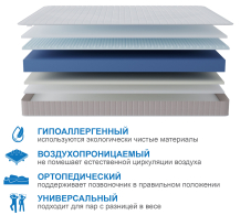Классический, двусторонний, беспружинный матрас на основе монолитного блока искусственной пены и ячеистого вязкоэластичного поролона. Ячеистый вязкоэластичный поролон (материал с ячейками памяти ) это продукт высоких технологий, самый эластичный и прочный из всех материалов класса «люкс», призванный обеспечить максимальный комфорт и здоровый сон. Данный уникальный материал с вырезанным в виде ячеек верхним рельефным слоем изготовлен на основе вспененного полиуретана поддерживает естественную циркуляцию воздуха внутри матраса, гипоаллергенный, препятствует образованию бактерий, выдерживает большие нагрузки, отлично поддерживает позвоночник, быстро реагирует на тепло, не впитывает влагу, обладает эластичностью, упругостью и микромассажным эффектом. Микромассаж нормализует кровообращение в мышцах, способствуя их расслаблению. Рекомендовано использование вместе с защитным чехлом Aquastop.Подходит для кроватей с подъемным механизмом.
