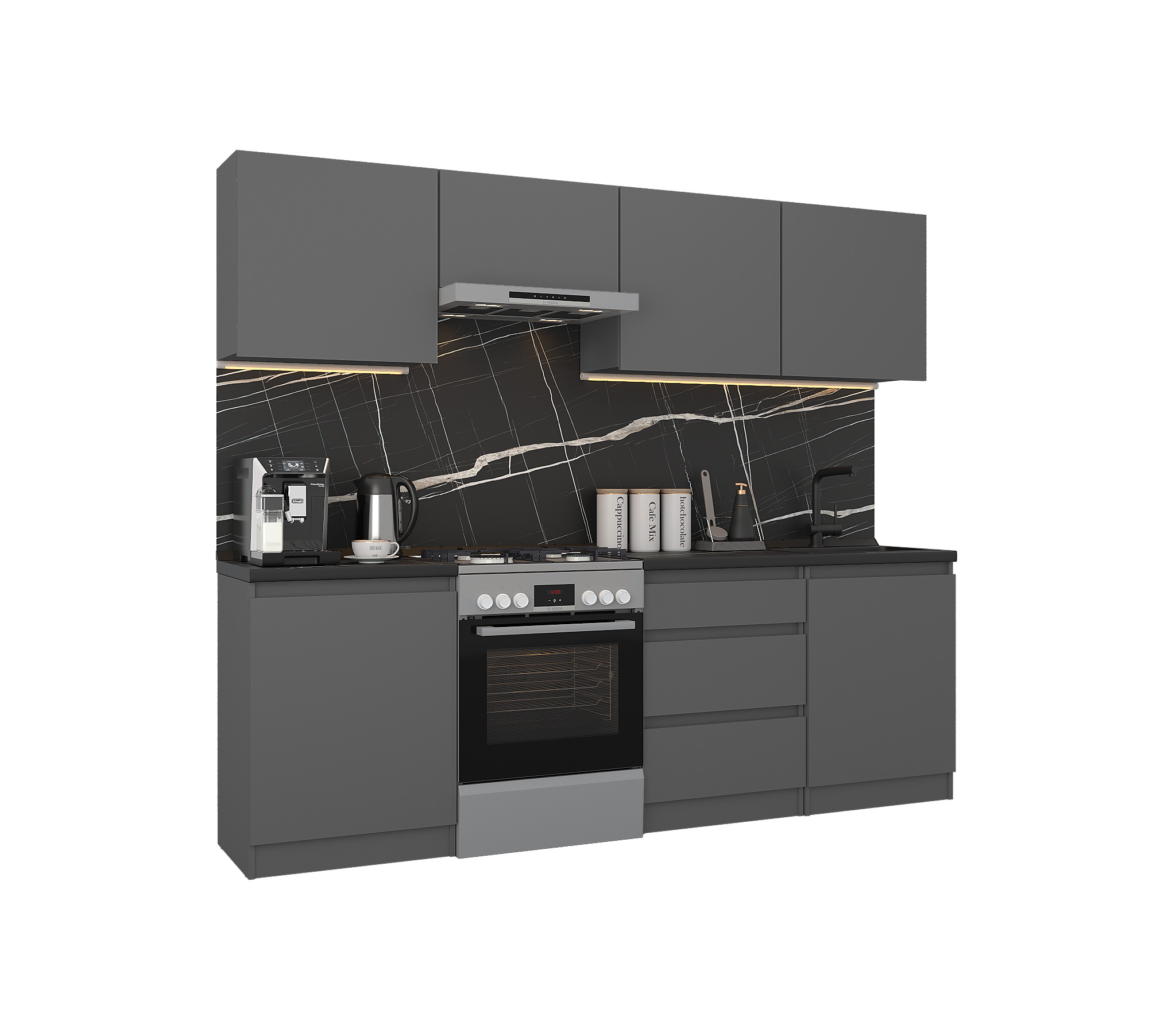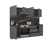 Кухонный гарнитур Леон прямой 240 см, диамант серый (Диамант серый)