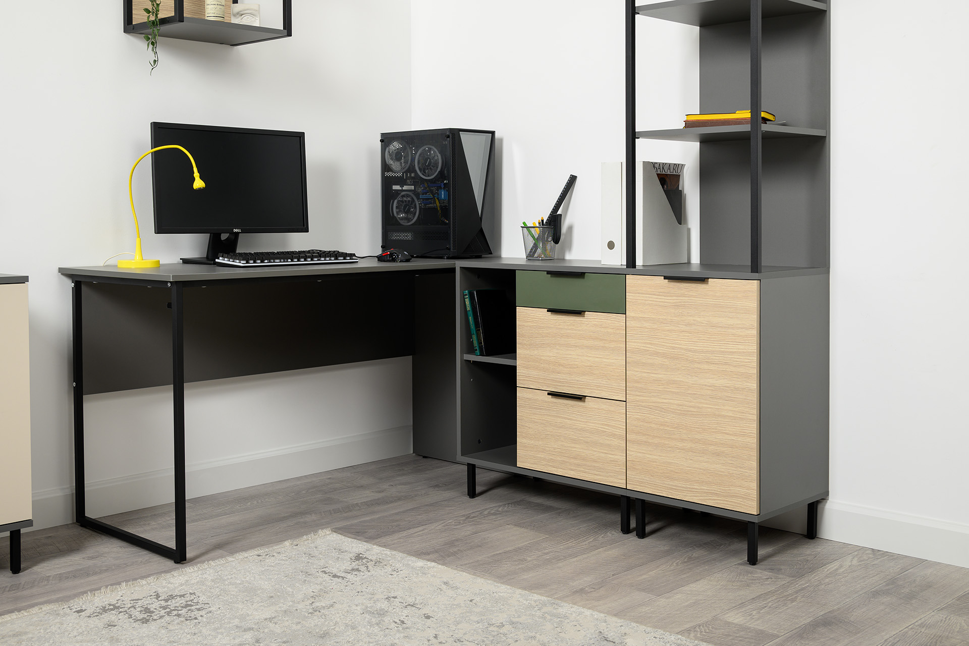 Широкая столешница 1400 мм сделает работу комфортной.