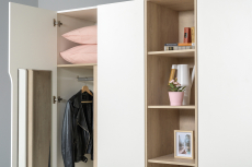 Стеллаж и шкафы могут быть собраны в единую компоновку, давая возможность собрать в интерьере стильную шкафную группу.