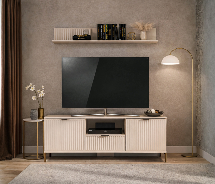 Тумба под ТВ с полкой для гостиной Турин Кашемир серый/МДФ Кашемир (Кашемир серый)