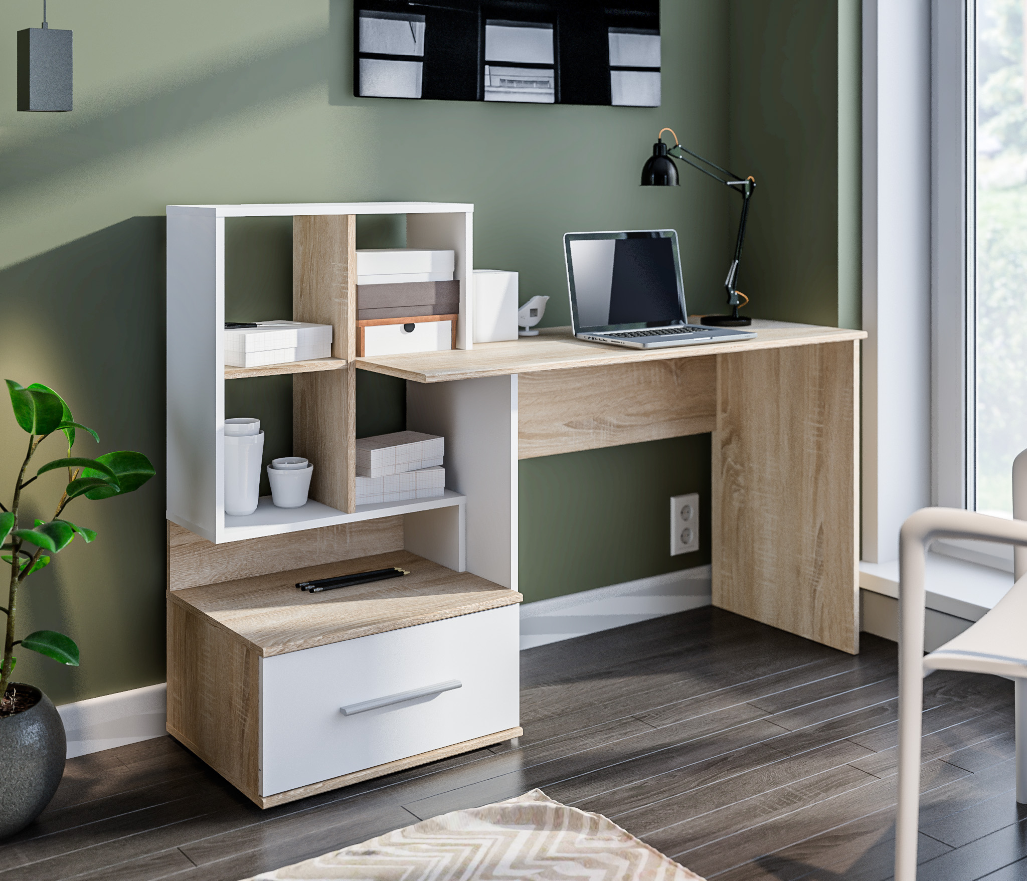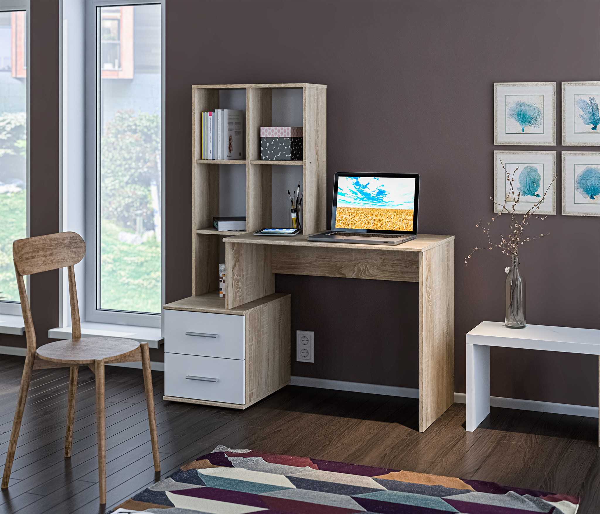 Стол Трувор 12.98N поможет создать идеальное рабочее место. Изделие имеет широкую столешницу, на которой можно разместить ноутбук, документы и при этом спокойно делать записи. Стол является надежным благодаря металлическим стойкам с регулируемыми опорами. Использование крестовых металлических стяжек вместо задней стенки делает конструкции лёгкими, воздушными и чрезвычайно прочными к боковым нагрузкам.