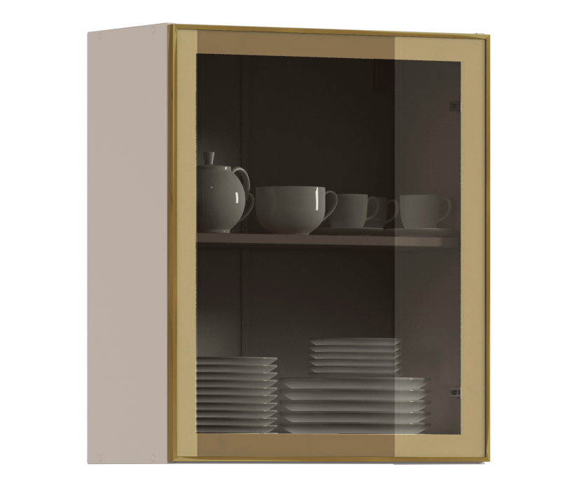 Навесной шкаф Регина РП-60 (Песочный/Витрина Золото) Код 00000336791