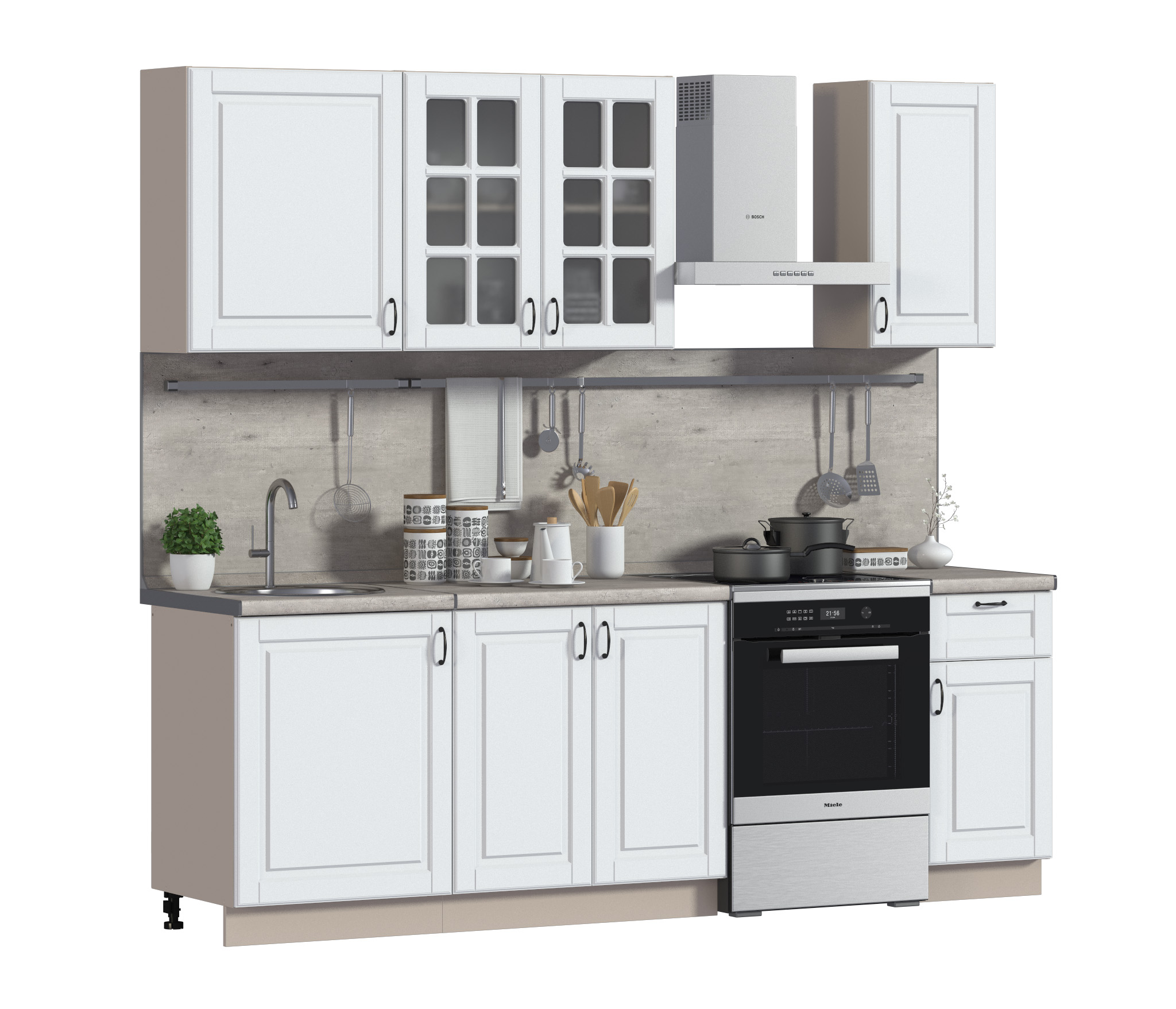 Кухонный гарнитур Регина24 Бежевый песок/МДФ Белоснежный/МетрополитанR5 (Бежевый песок/Белоснежный)