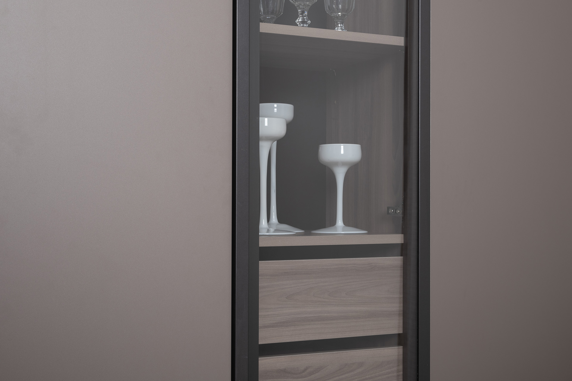 Два цветовых решения: крем и графит в сочетании с древесным декором корпуса и тонированным стеклом.