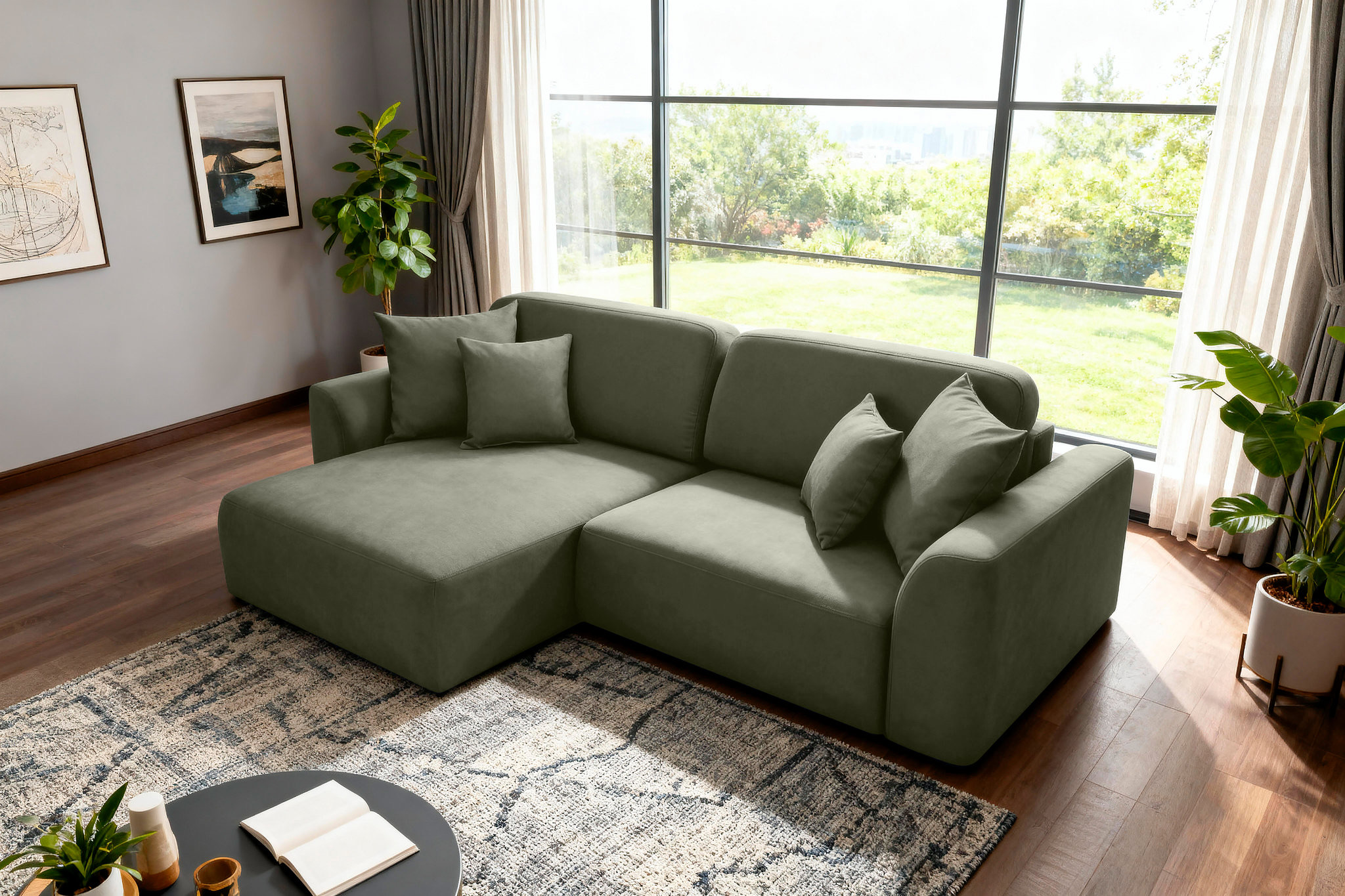 Широкие подлокотники и упругое сиденье с независимым пружинным блоком гарантируют комфорт и поддержку, а комплект мягких декоративных подушек добавляет уют и стиль.