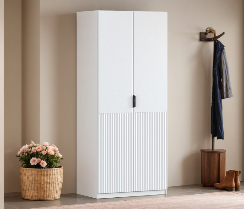 Шкаф двухдверный Макс 1000 мм, вариант №4 (ЛДСП/МДФ) (Белый)