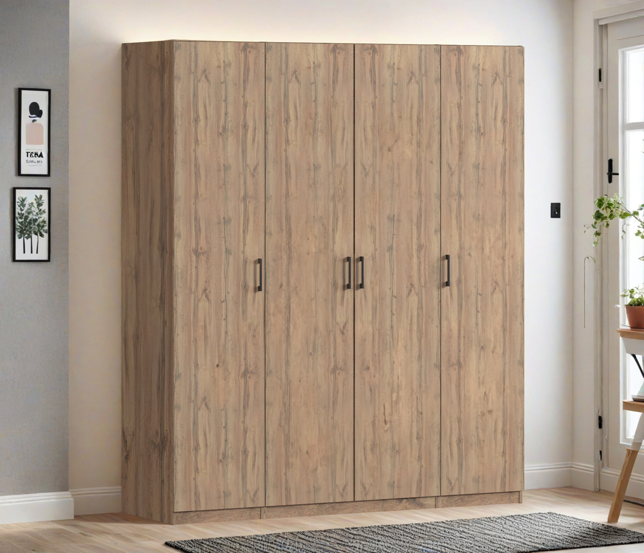 Шкаф четырехдверный Макс 2000 мм, вариант №4 (ЛДСП, корпус дуб вотан) (Дуб Вотан)