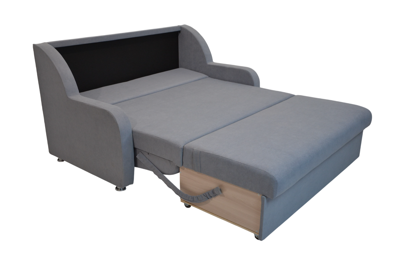 Коллекция ММ ВИА позволит подобрать кресло- и диван-кровать со спальным местом шириной от 70 до 140 см. Габариты: 1620*900*1100 мм; Спальное место: 1900*1400 мм; механизм выкатной. Наполнение: независимый пружинный блок, синтепон, войлок. Обивка - ткань велюр, истираемость 60000 циклов. Каркас выполнен из фанеры , ДВП, брус-сосна. Прекрасно подойдет как для гостевого варианта, так и для повседневного использования. Легко раскладывается. Имеет ящик для хранения белья. Максимальная нагрузка на спальное место – 100 кг.