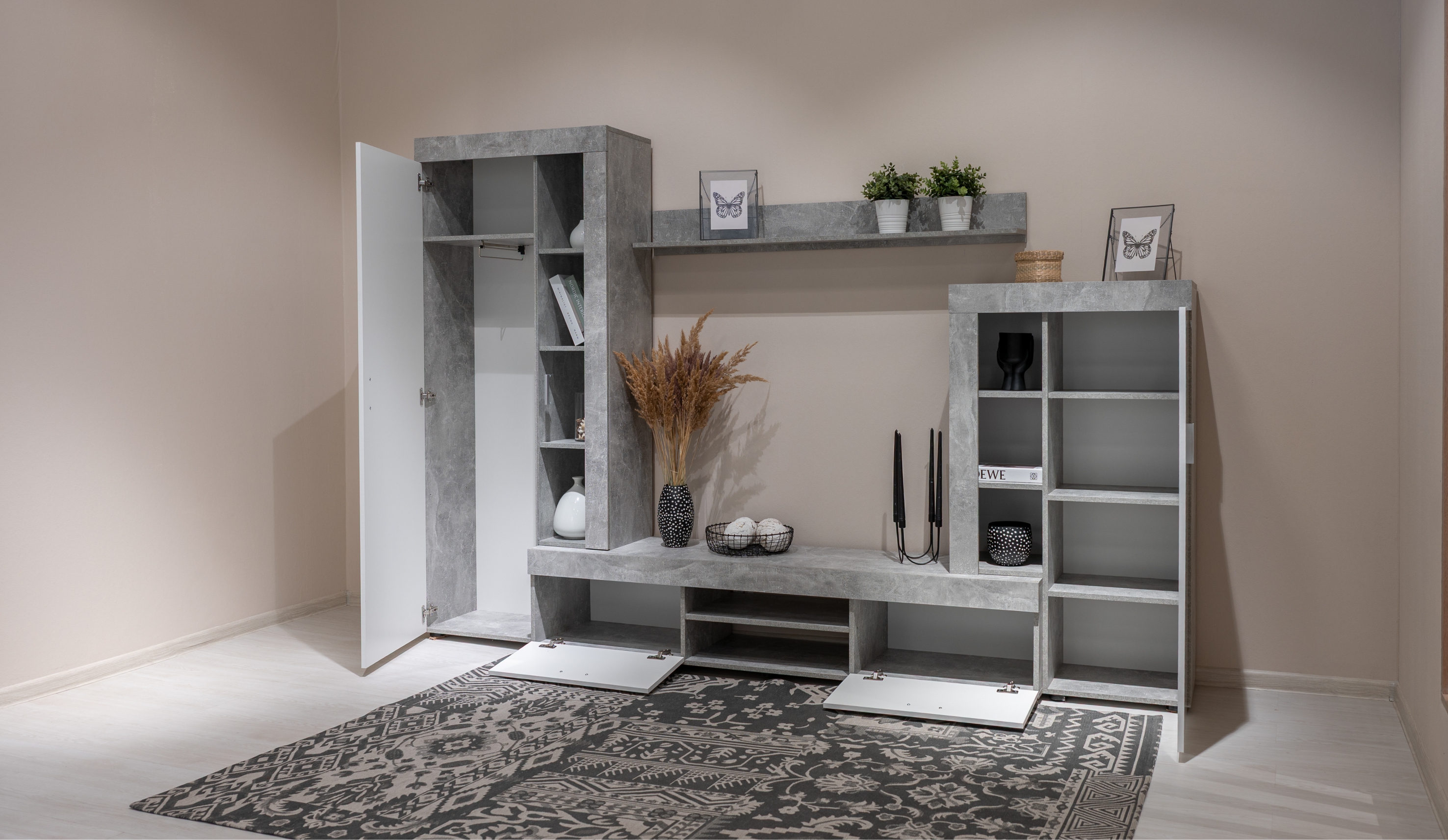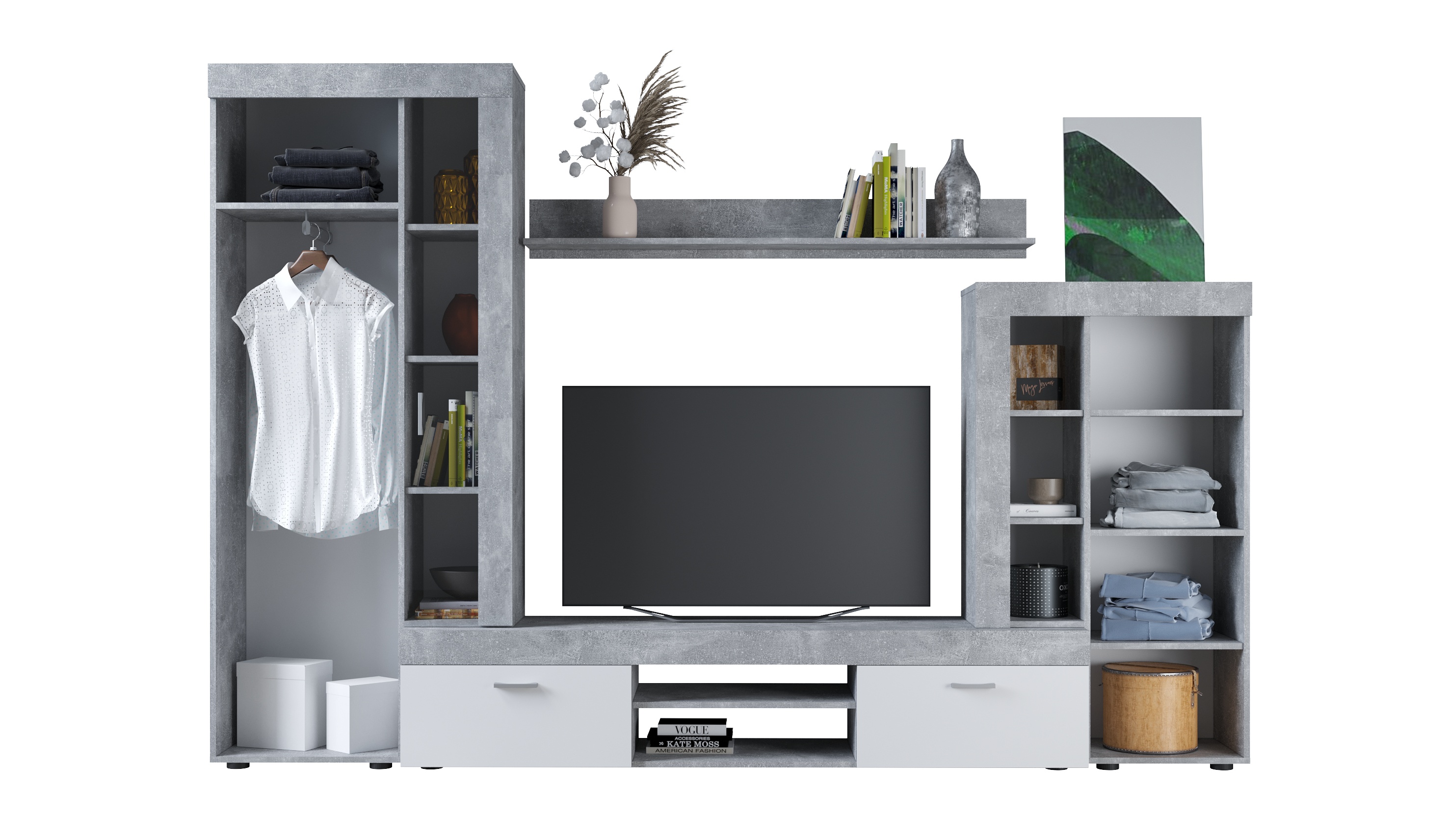 Стенка «Орфей» – яркий представитель стиля минимализма. Стилистическим акцентом являются утолщенные линии корпуса, которые придают выразительность и брутальность стенке. Природная гамма цветов декора – теплый «дуб сонома» и прохладный «белый» создают комфортное светлое пространство. В стенке предусмотрены открытые и закрытые отделения для хранения вещей, медиааппаратуры и TV. Полноценный платяной шкаф с выдвижной поперечной штангой дополнительно можно укомплектовать полками. Материалы стенки экологически чисты и безопасны.