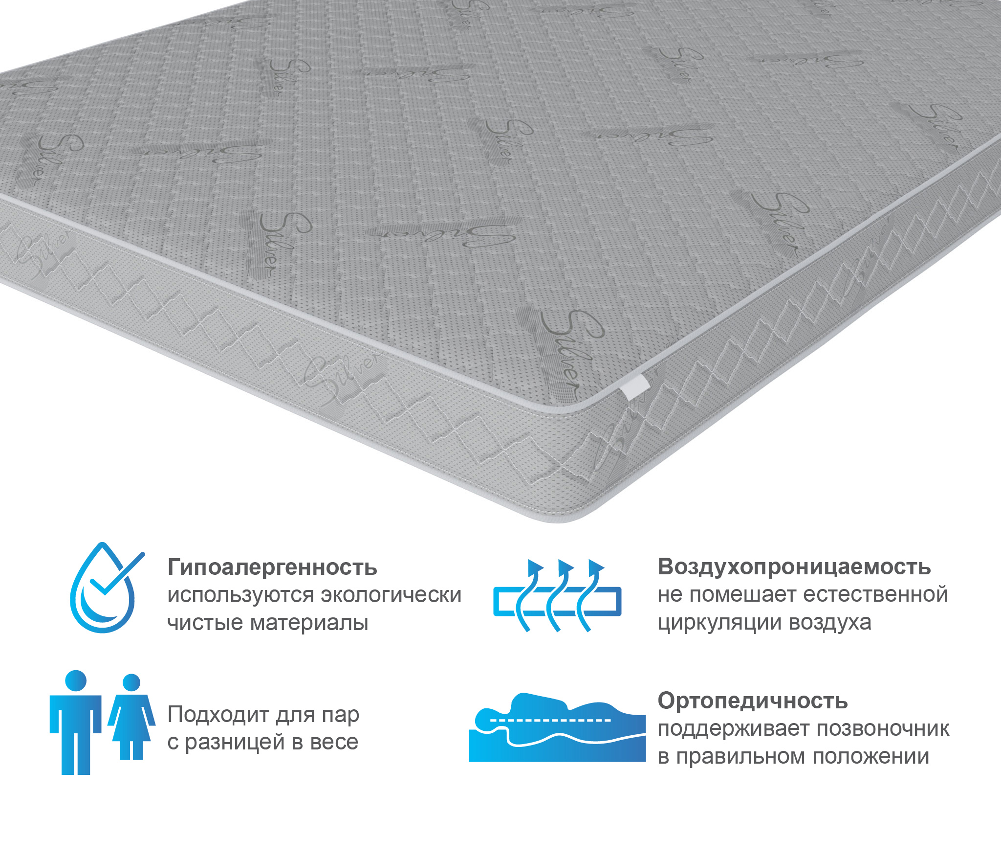 Гипоаллергенный спальный матрас прослужит долгие годы. Для продления срока эксплуатации рекомендуем использовать изделие вместе с защитным чехлом.