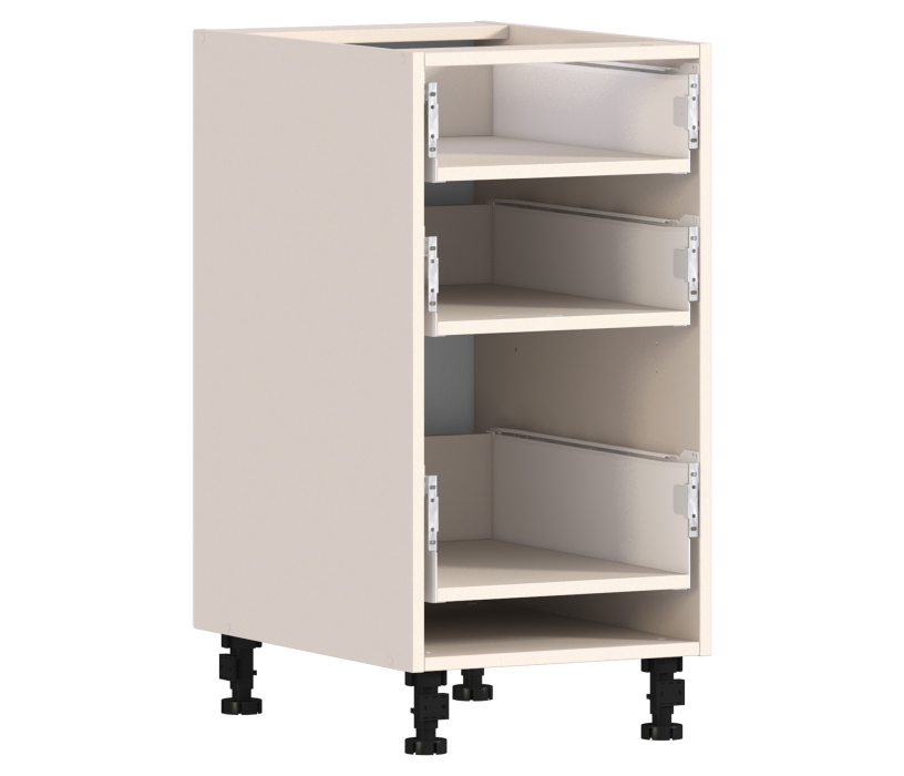 Корпус для практичного шкафа с тремя выдвижными ящиками. Такой шкаф идеально впишется в интерьер современной кухни. Необычные металлические ножки делают его оригинальным. Дверцы и панели для ящиков нужно заказывать отдельно.