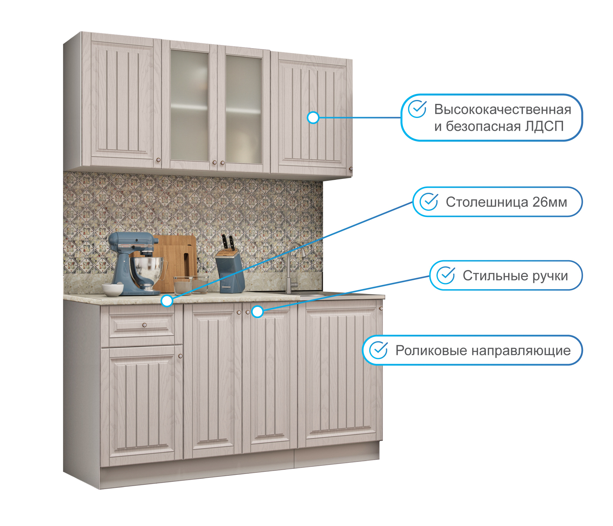 Дешевая, симпатичная кухня, довольно качественно сиотрится и ручки красивые