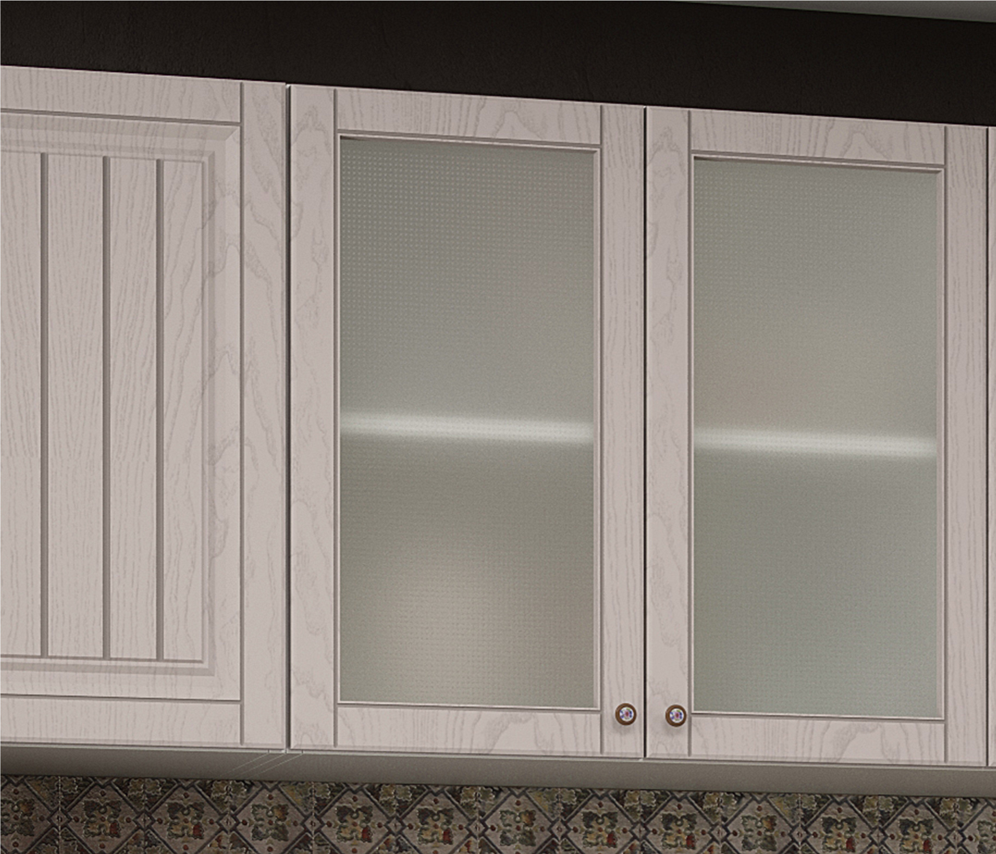 два верхних шкафа - общая ширина 1200мм (500мм , 700мм со стеклом) и на 800мм. Высота 626мм. Глубина 270 мм.