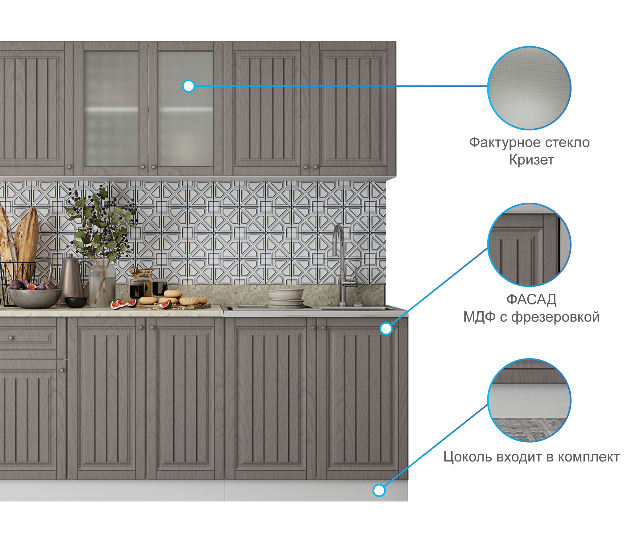 Две недели выбирали кухню. Остановились на этой и не пожалели. Когда собрали и установили, были очень довольны своим выбором. Вид необычный, цвет не избитый, смотрится шикарно.