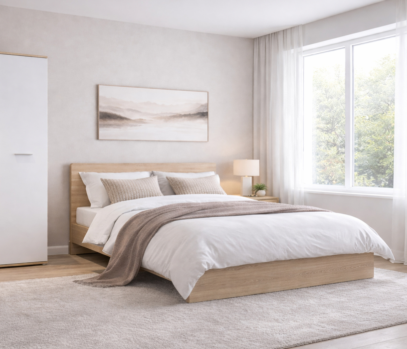 Кровать Мамбо СБ-2679 1600 с ортопед. основанием и матрасом Лорд (Дуб Сонома)
