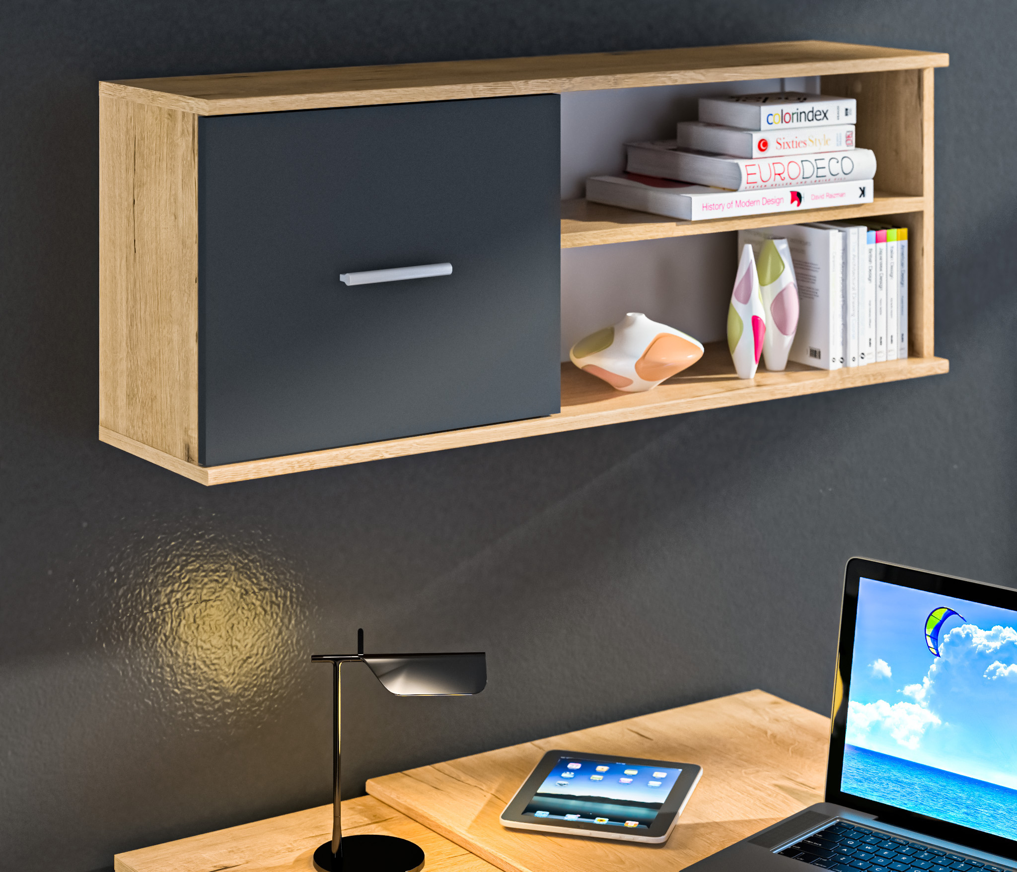 Выполнен комод Мамбо из современного материала. Основной цвет отделки -- «Дуб Сонома», а фасады выдвижных ящиков имеют белое матовое покрытие.