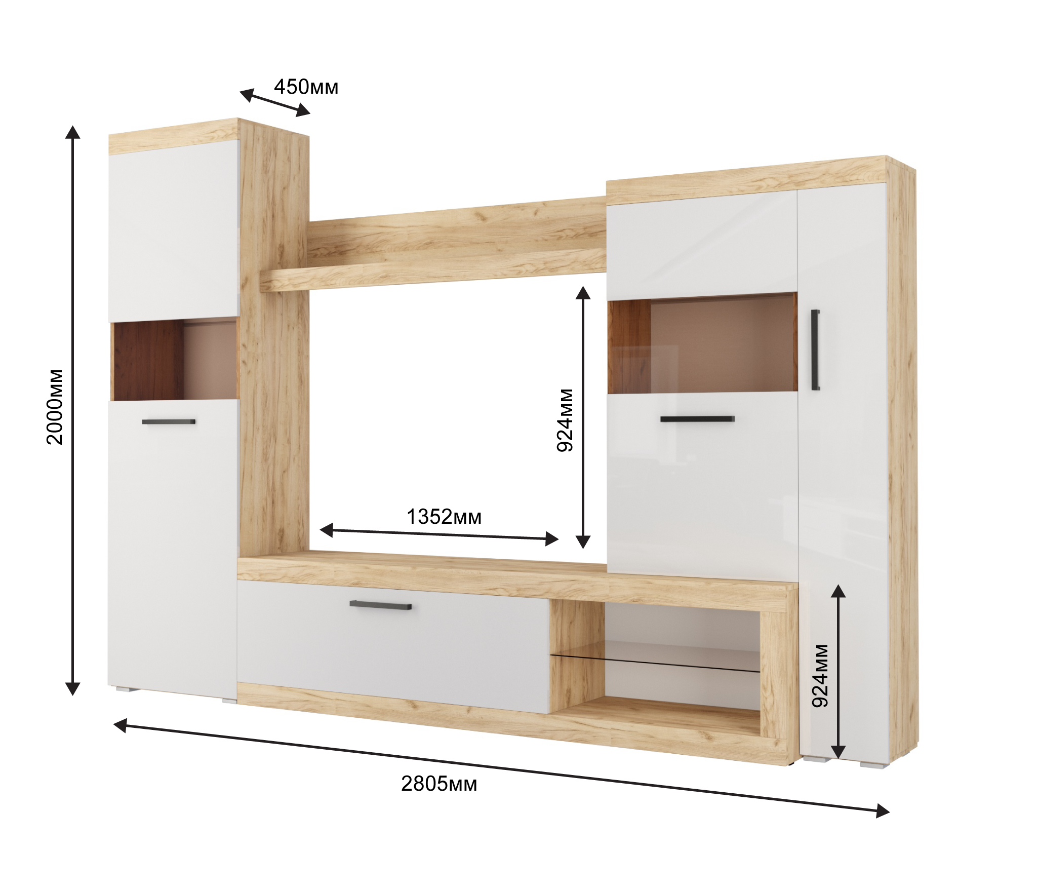 Размеры: Ш2805 х Г400 х В2000 мм