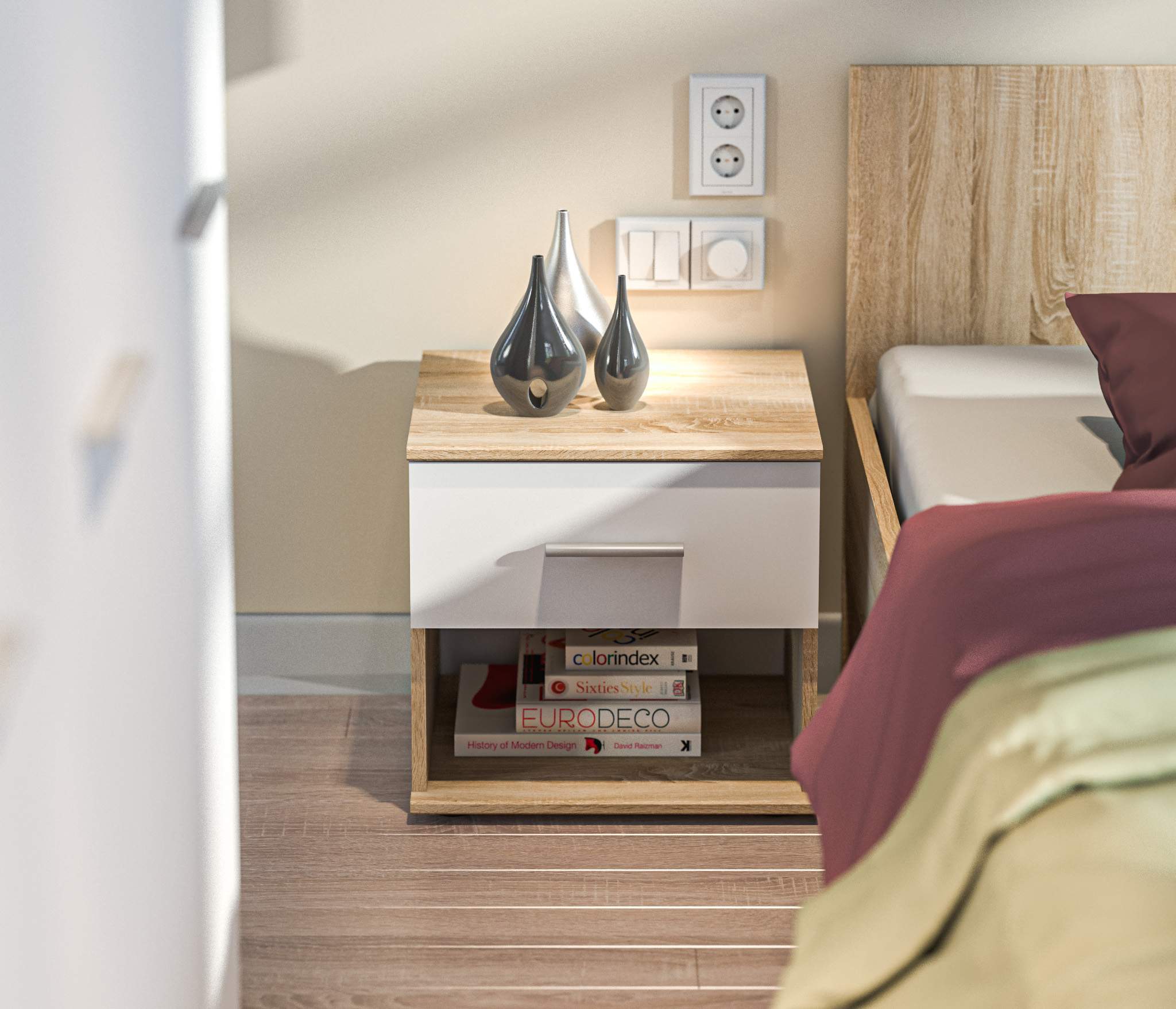Мамбо СБ-2683.Н Тумба прикроватная Дуб Сонома/Белый
