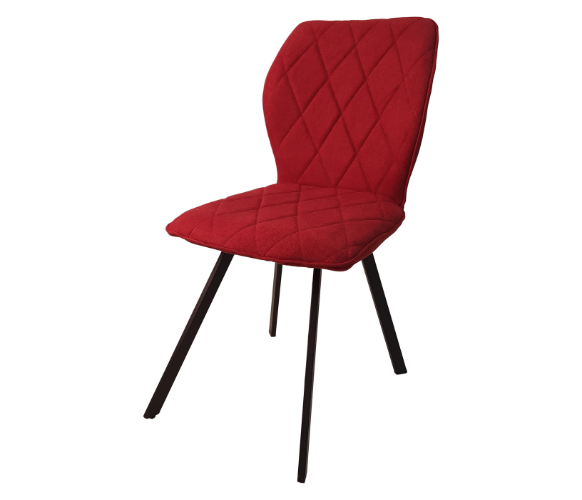 Стул с сиденьем и спинкой геометрической формы, редкого красного цвета. Идеально впишется в интерьер гостиной или кухни в стеле "лофт". Обивка - вельвет. Опоры металлические, окрашены черной порошковой краской. Размер - 455*600*865мм.