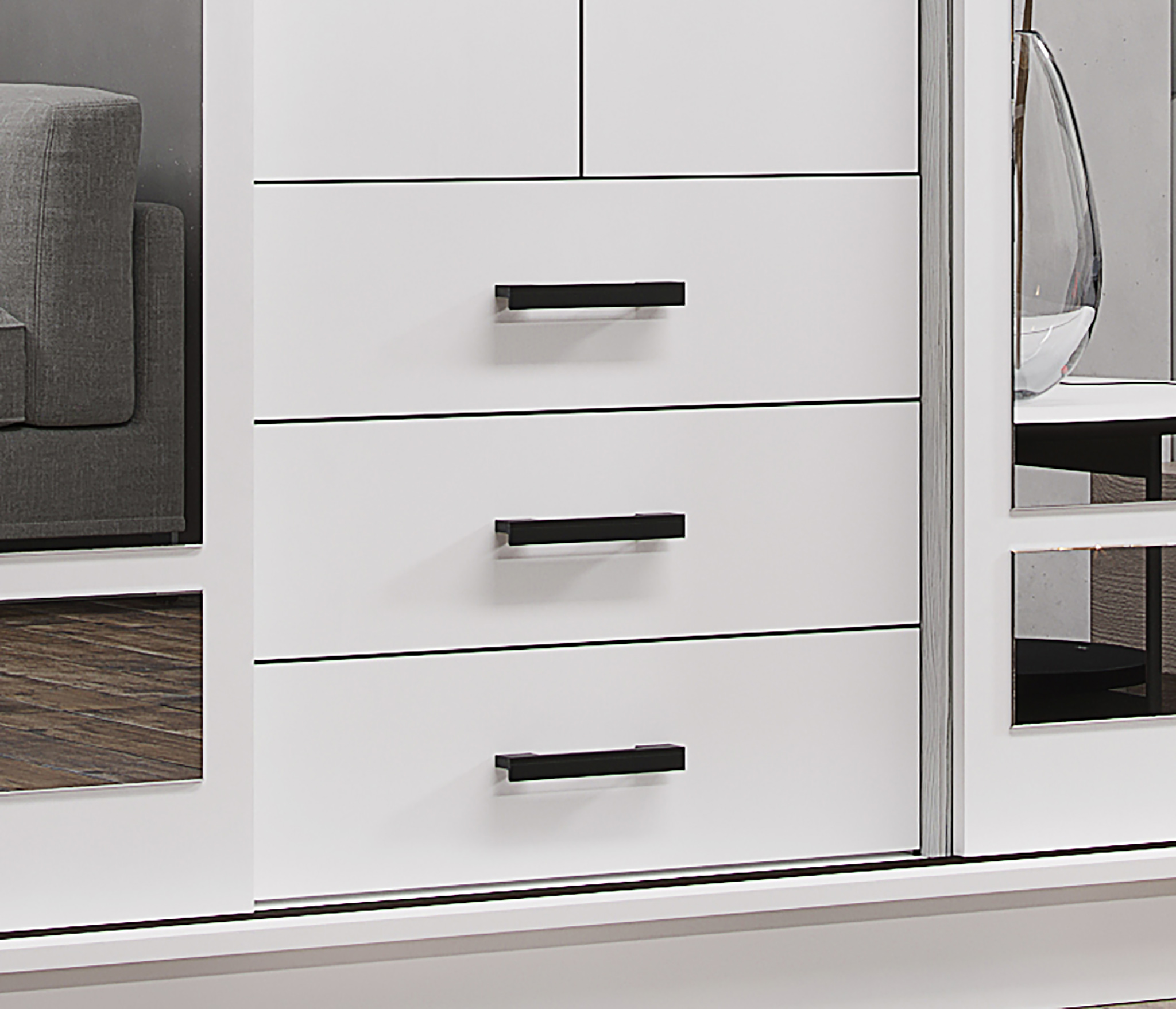 "Лесенка" из ящиков, где должна быть плоскость. В плоскость "середину" шкафа не вывести.