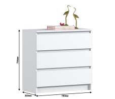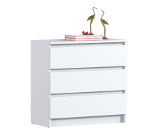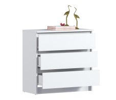 Комод для вещей Леон СБ-3287 лаконично разместится в любом интерьере. Удобный дизайн небольшого размера, 75х78х45 см, не займет много места в комнате. Комод представлен в современных и органичных цветах. Поставьте комод в детскую комнату, используйте для игрушек, в спальню или в гостиную - для одежды, модель подойдет даже для ванной комнаты, чтобы уютно расположить и оставить буквально под рукой все банные принадлежности: полотенца, технику, косметику и бытовую химию. Комод с ящиками выполнен из ЛДСП: прочного и долговечного материала, который устойчив к механическим повреждениям. Мебель дополнена тремя вместительными ящиками, надежными механизмами открывания, а отсутствующие ручки делают модель более органичной и лаконичной.
