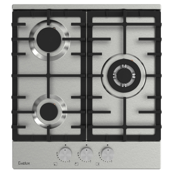 Поворотные регуляторы газовых варочных поверхностей Evelux выполнены из металла, что создает профессиональный стиль и препятствует их перегреву.