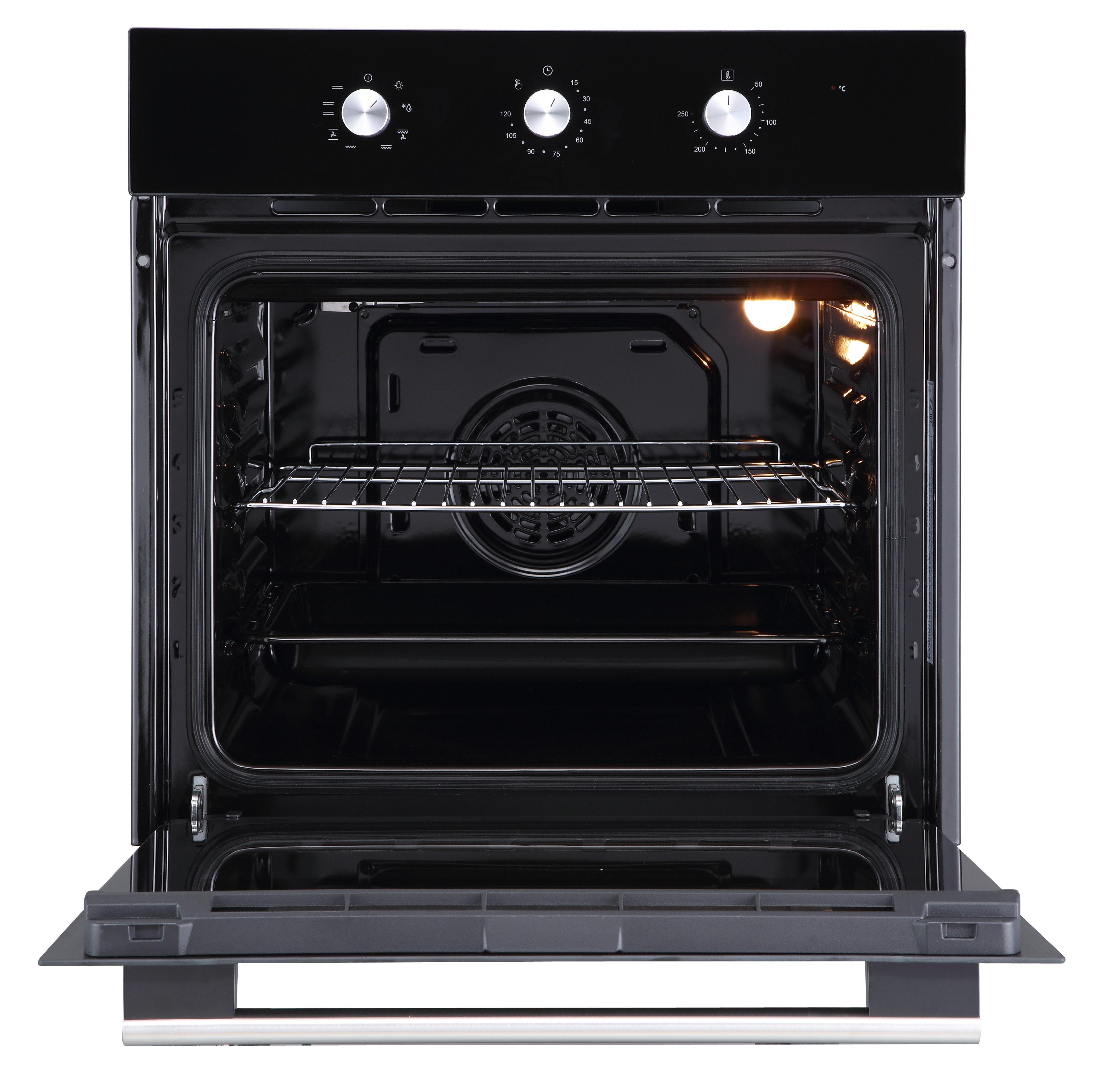 • Пользоваться духовкой легко: 3 поворотных переключателя регулируют температуру, режим и время приготовления.
