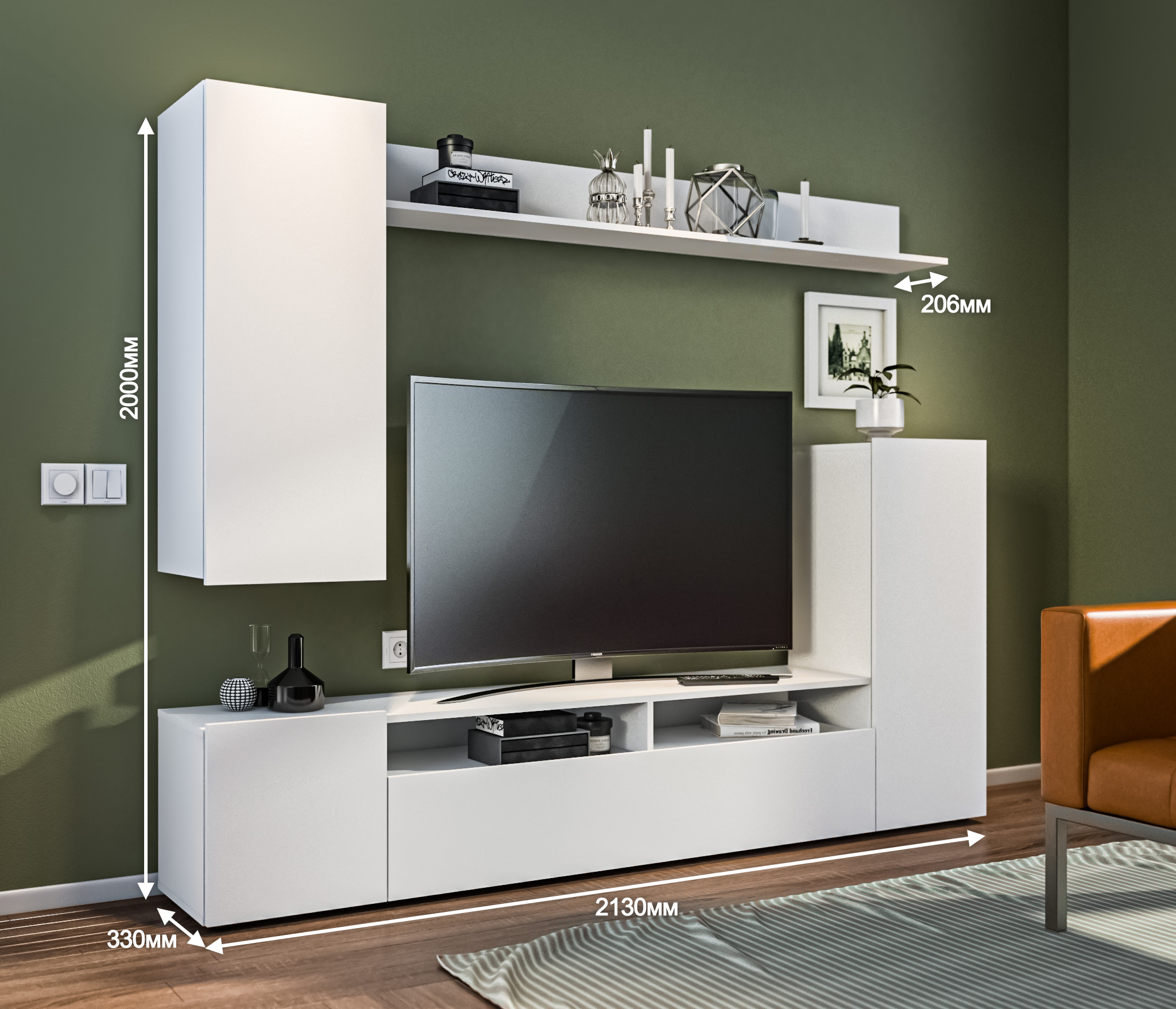 Стенка Медея СБ-3411 – практичный и стильный предмет мебели, который станет идеальным дополнением интерьера гостиной. Габаритные размеры – ширина 213 см, высота 200 см, глубина 33 см.