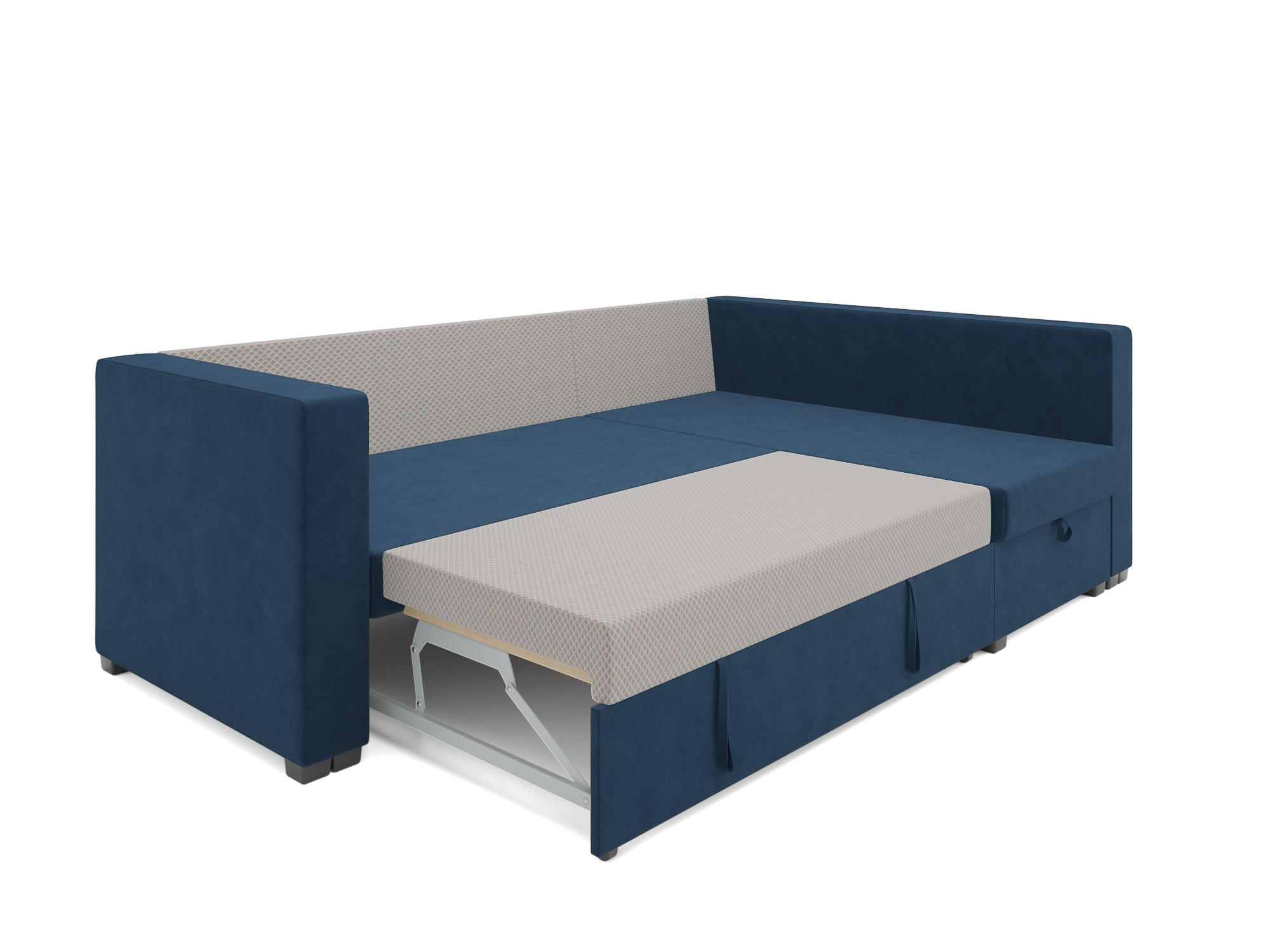 Наличие бельевого ящика обеспечивает дополнительное место для хранения вещей под сиденьем углового дивана.