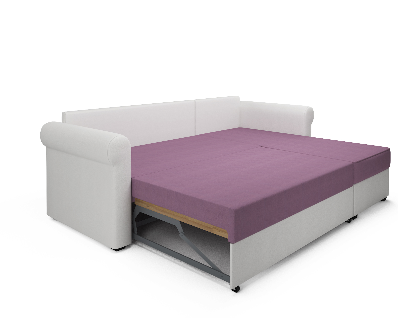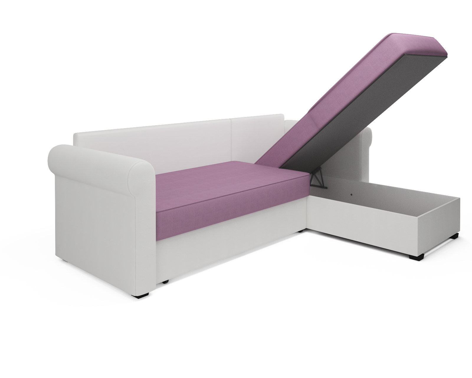 Удобный доступ к бельевому ящику не требует дополнительных затрат. Храните пастельные принадлежности, подушки и другие вещи в угловом отсеке дивана.